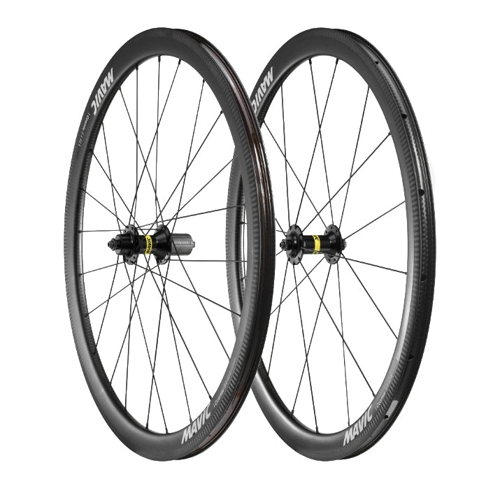 Mavic Cosmic S 40 carbon hjulsæt, til dæk og slange eller UST tubeless. Håndbygget hjulsæt til racercykel med fælgbremser og quick-release aksler. Der medfølger formonteret tubeless fælgbånd + 2 stk UST ventiler samt carbon bremseklodser.